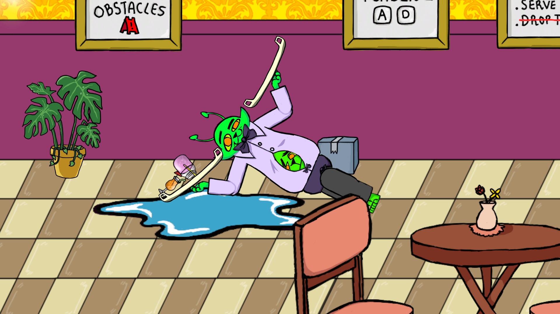 Step into the shoes of the galaxy's most dedicated (and greenest) waiter in Area 9 to 5! Your mission is simple: deliver drinks to your waiting customers. The catch? Physics is your absolute worst enemy.